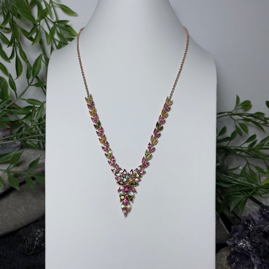 Stonelry Elegant Rose Gold Tourmaline Leaf Pendant Necklace