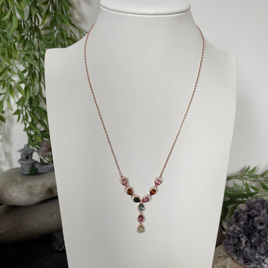 Stonelry Multicolor Tourmaline Teardrop Pendant on Rose Gold Plated S925 Sterling Silver Chain