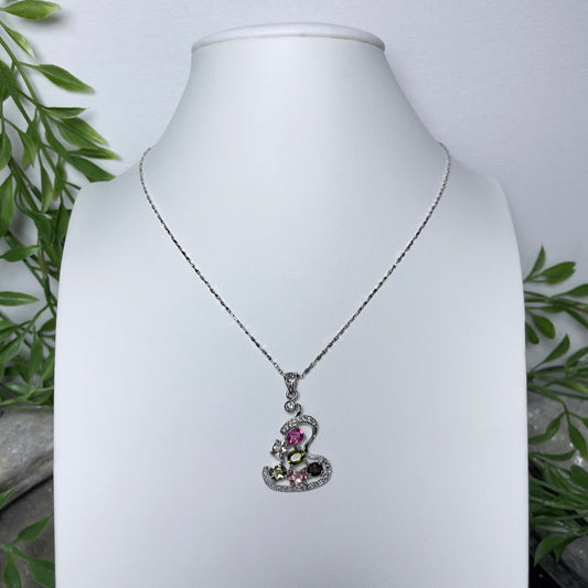 Stonelry Elegant S925 Sterling Silver Chain with Enchanting Tourmaline & Zircon Floral Pendant