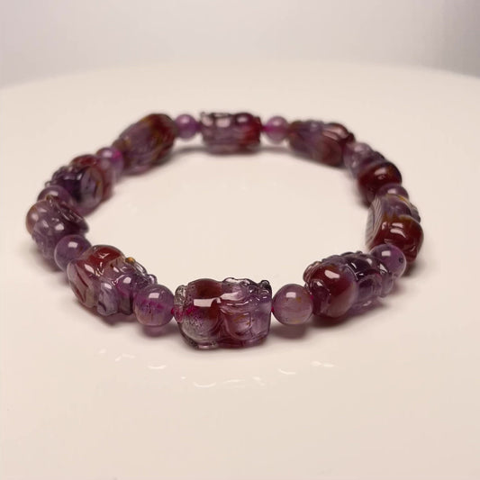Stonelry Natural Premium Auralite 23 Pixiu Crystal (Amethyst) Beaded Bracelet (8.9mm - 16.7mm) #3281008208