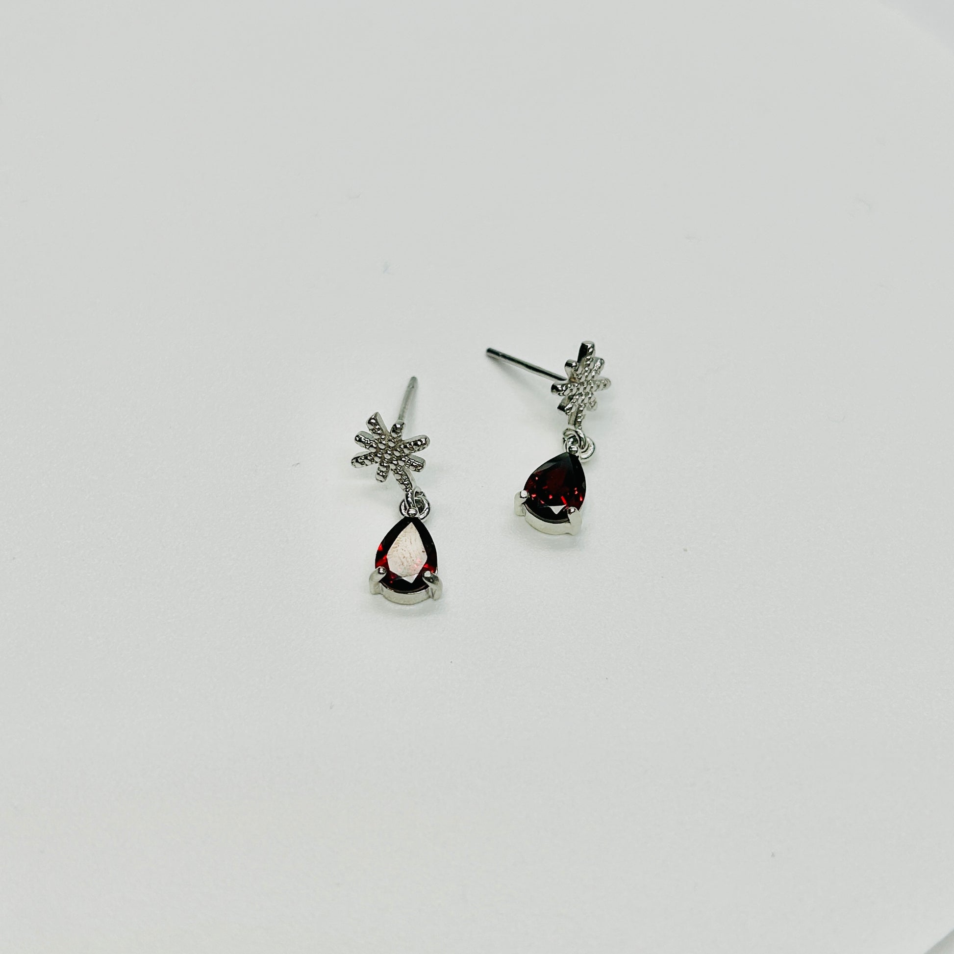 - Material: Sterling Silver, Garnet