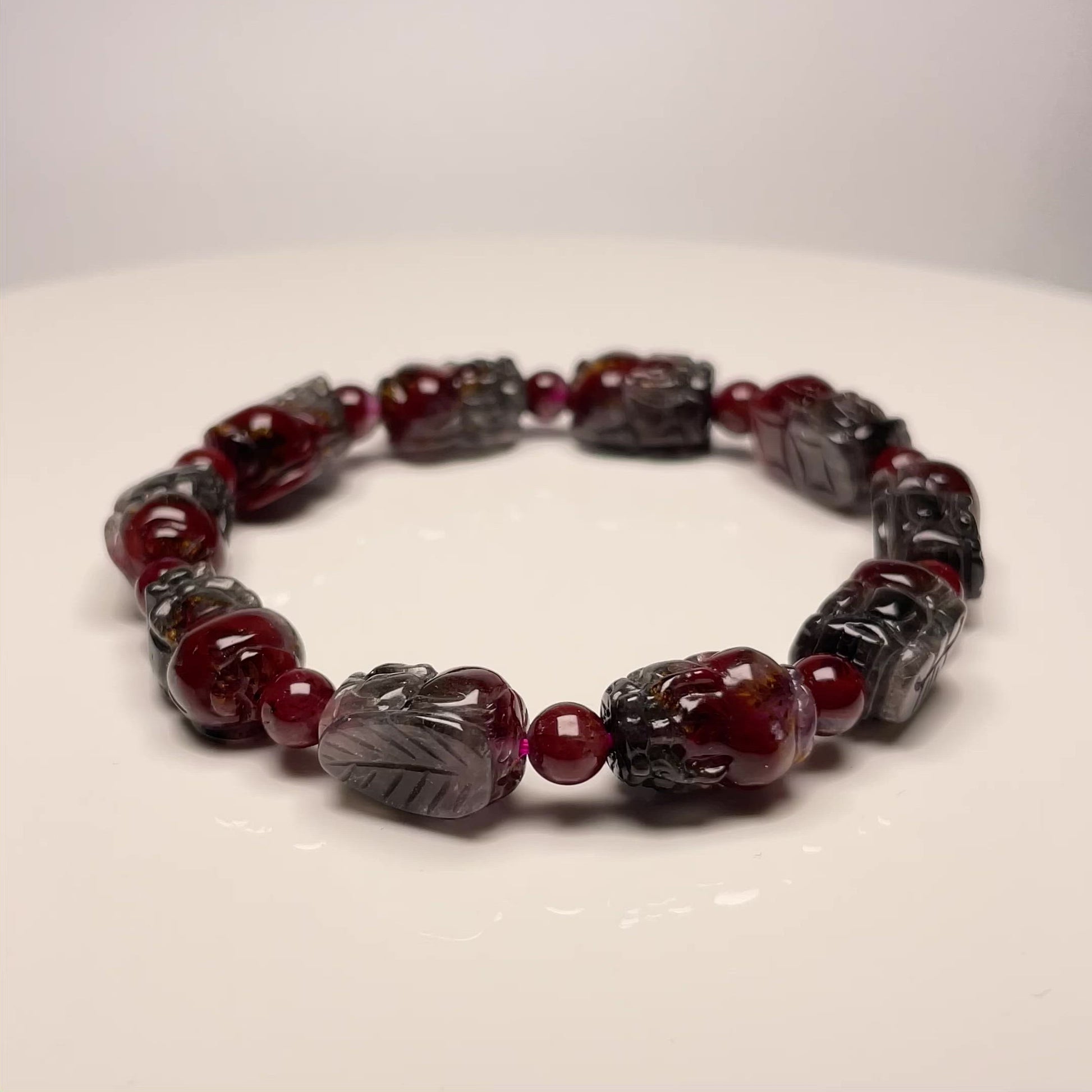Stonelry Natural Premium Auralite 23 Pixiu Crystal (Amethyst) Beaded Bracelet (9.9mm - 15mm) #3281008309