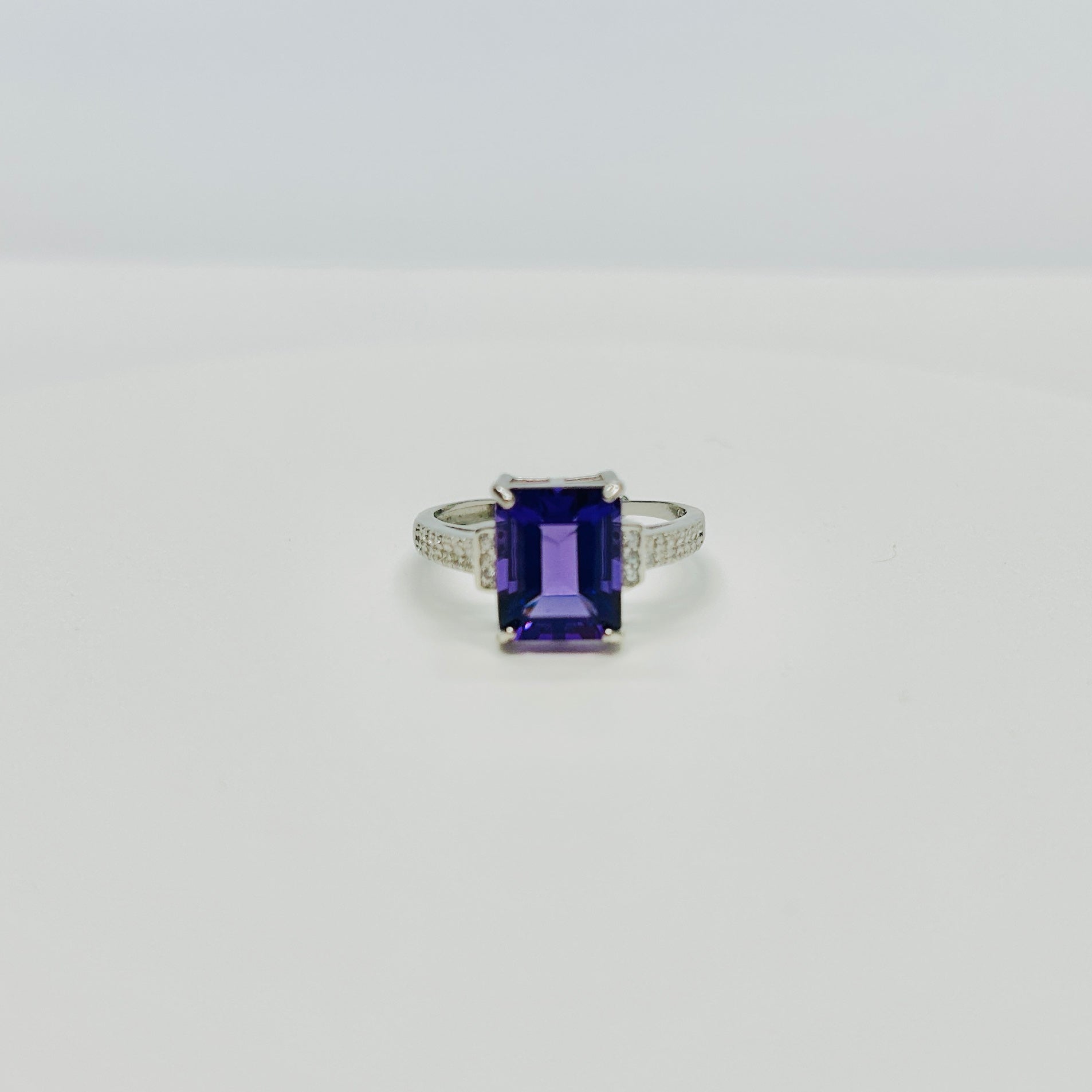 Indulge in timeless luxury with our Baguette-Cut Amethyst Cocktail Ring. This captivating ring features a stunning rectangular amethyst gemstone, meticulously cut to maximize its brilliance and captivating color. The rich purple amethyst gemstone is a captivating centerpiece, sure to turn heads. Amethyst is also believed to promote inner peace and tranquility, adding a touch of mystical allure.