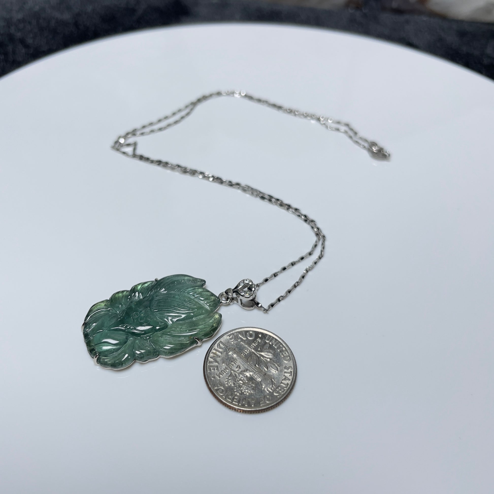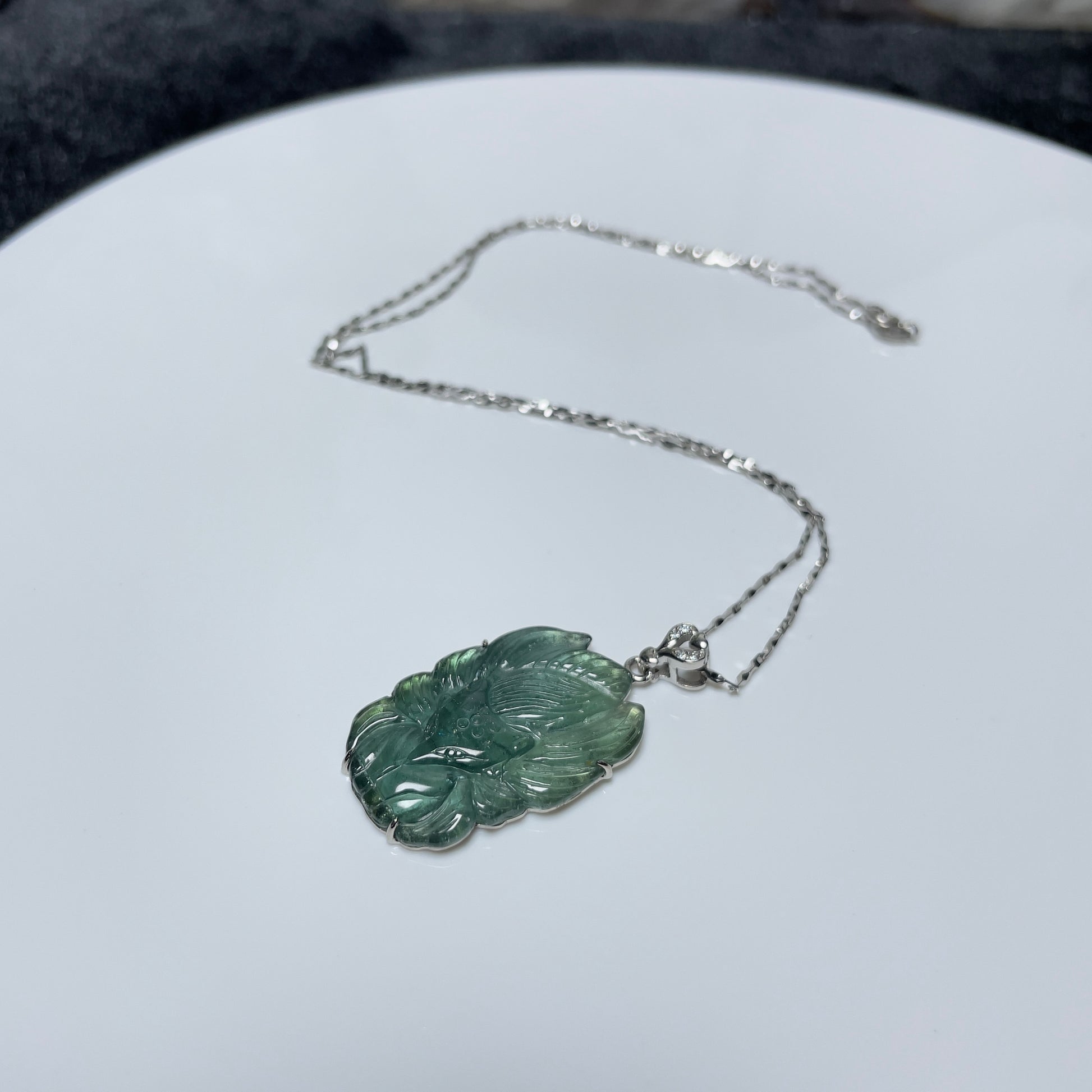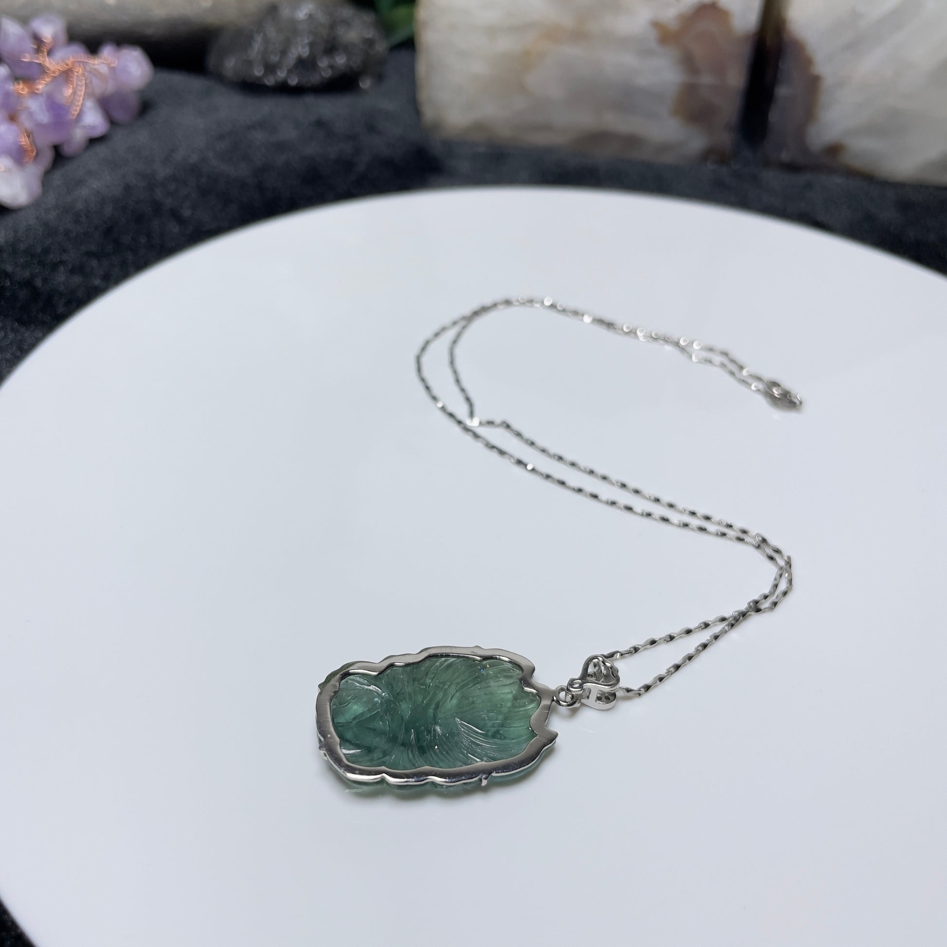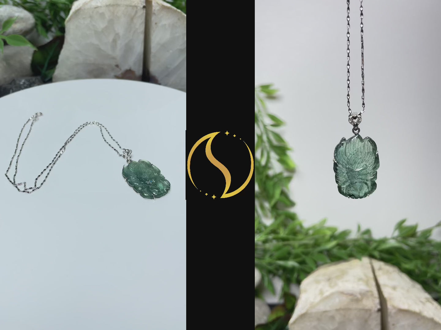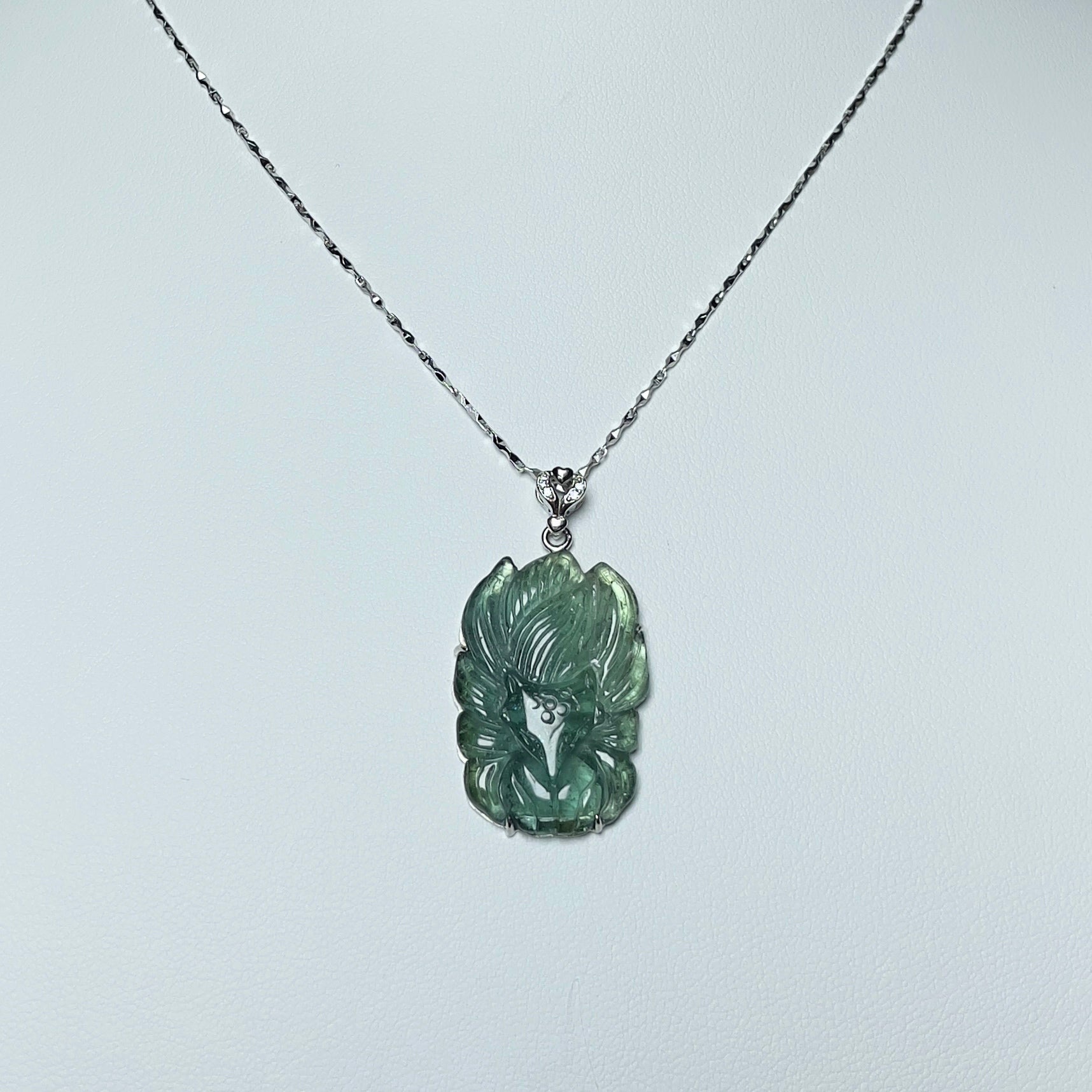 Each pendant is masterfully crafted to depict the legendary nine-tailed fox, believed to possess mystical powers and bring romance into your life. The vibrant green tourmaline stone is meticulously carved, showcasing a spellbinding pattern that captures the light and the eye of any beholder.