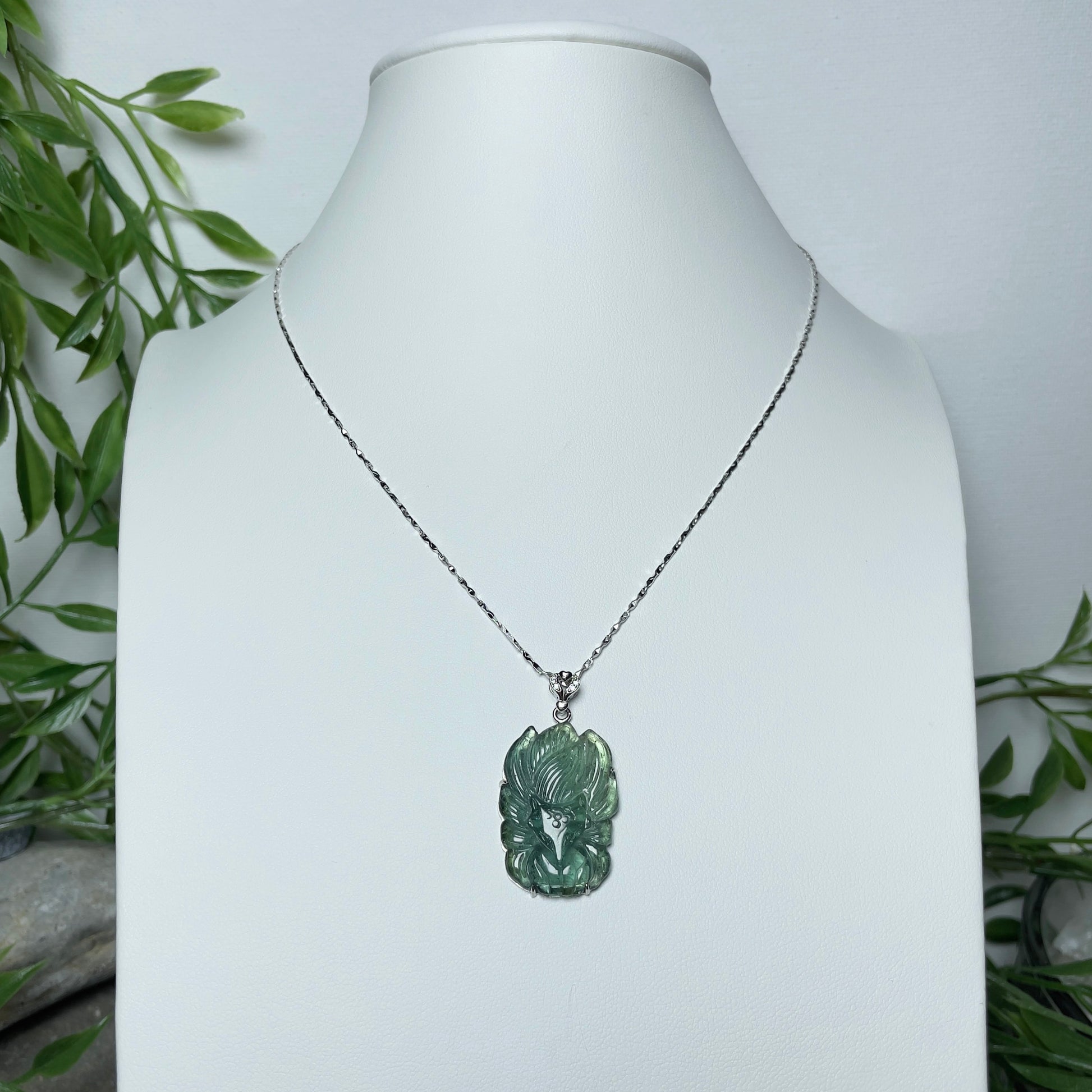 Stonelry Captivating Green Tourmaline Nine-Tailed Fox Pendant with S925 Sterling Silver Necklace