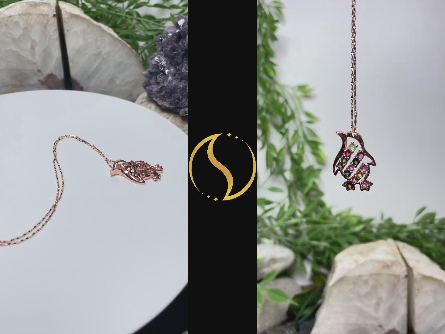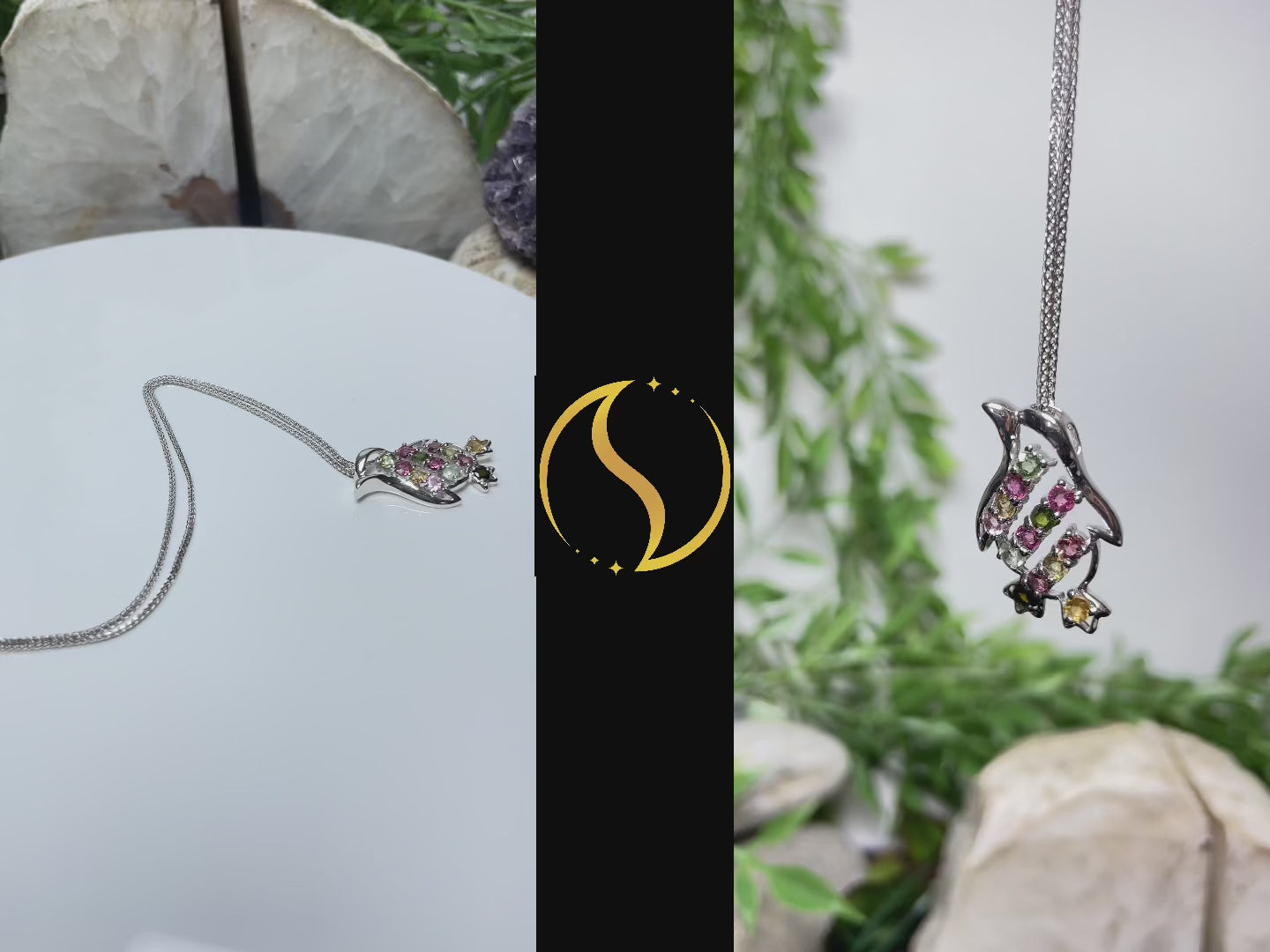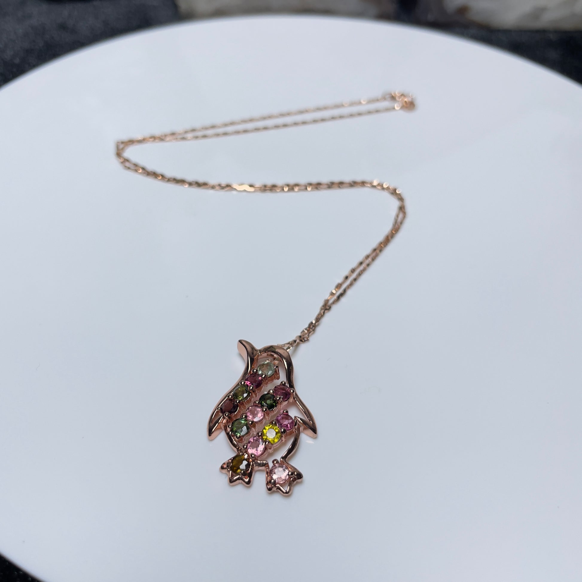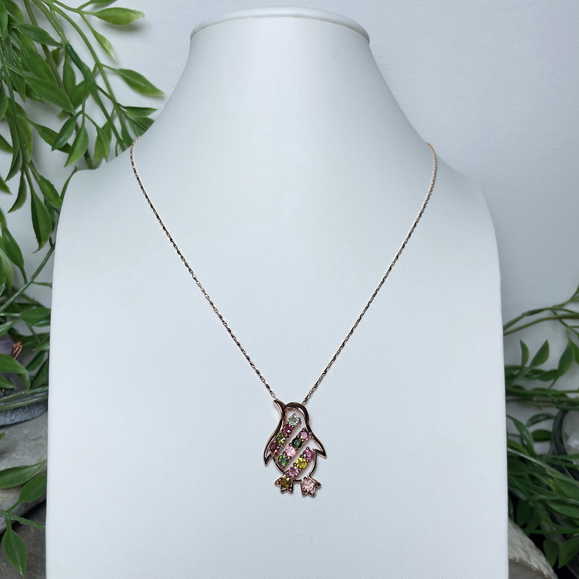 Embrace the charm of the Antarctic with our 'Charming Penguin' pendant, a delightful addition to your jewelry collection that captures the whimsical essence of these beloved penguin. This enchanting pendant is intricately crafted with multi-colored tourmaline stones, each selected for its deep and lustrous color, resembling the varied hues found in the natural habitat of penguins.