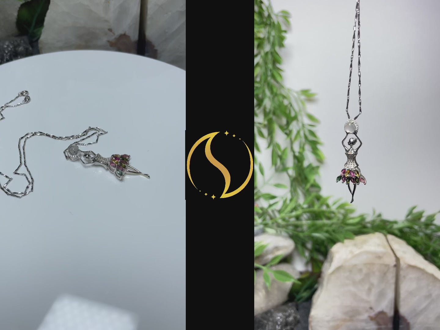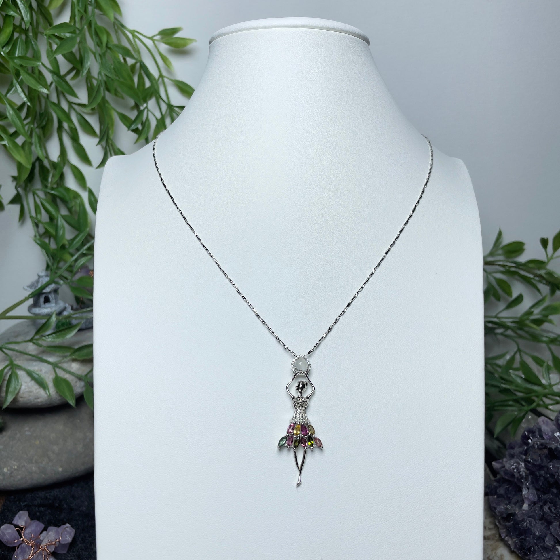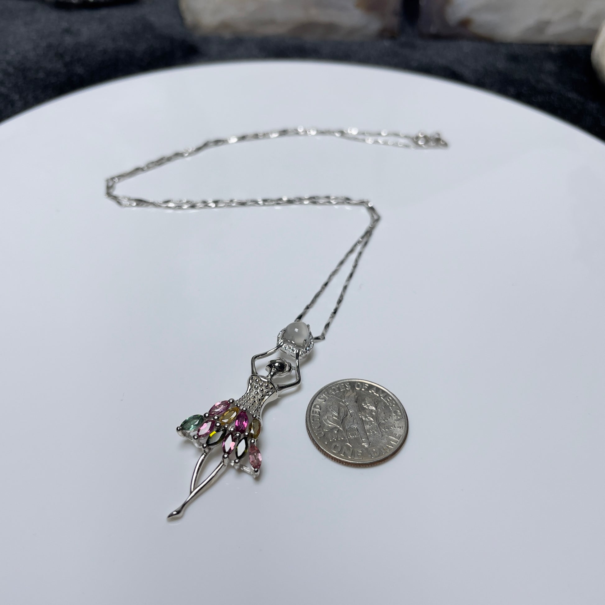 Stonelry Elegant S925 Sterling Silver Ballerina Pendant with Natural Tourmaline and Zircon Stones