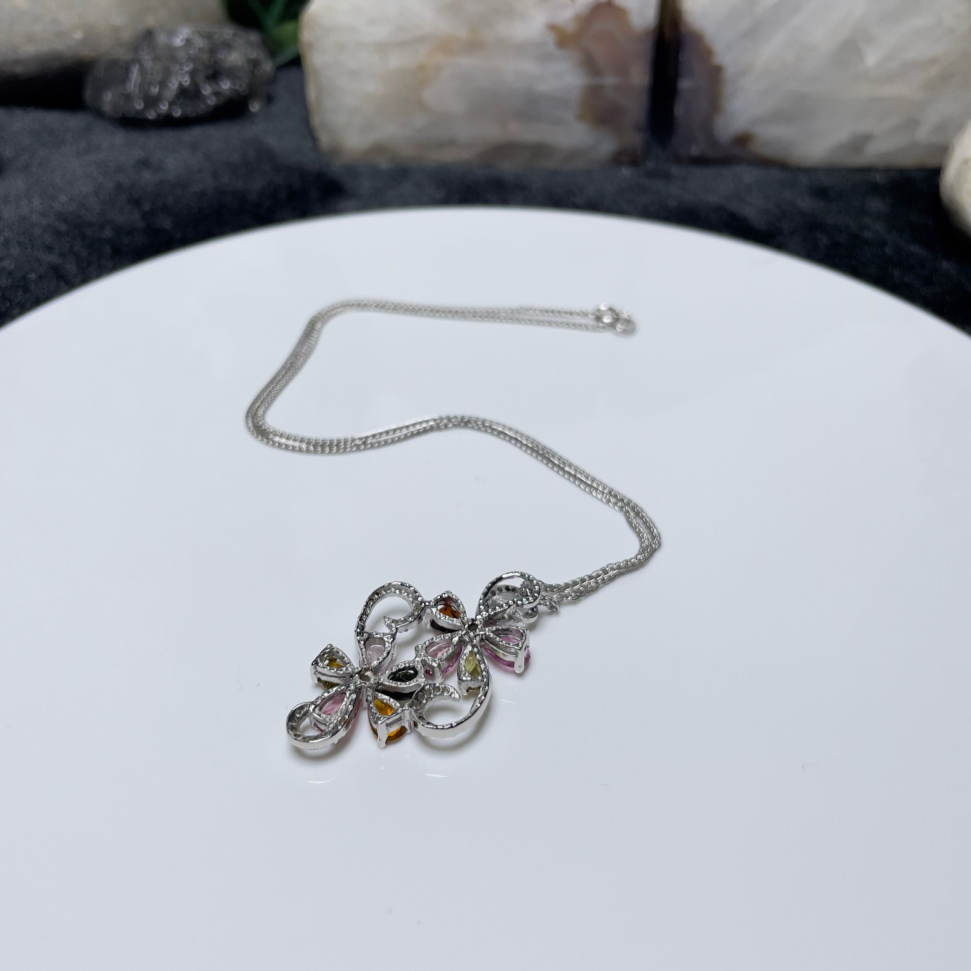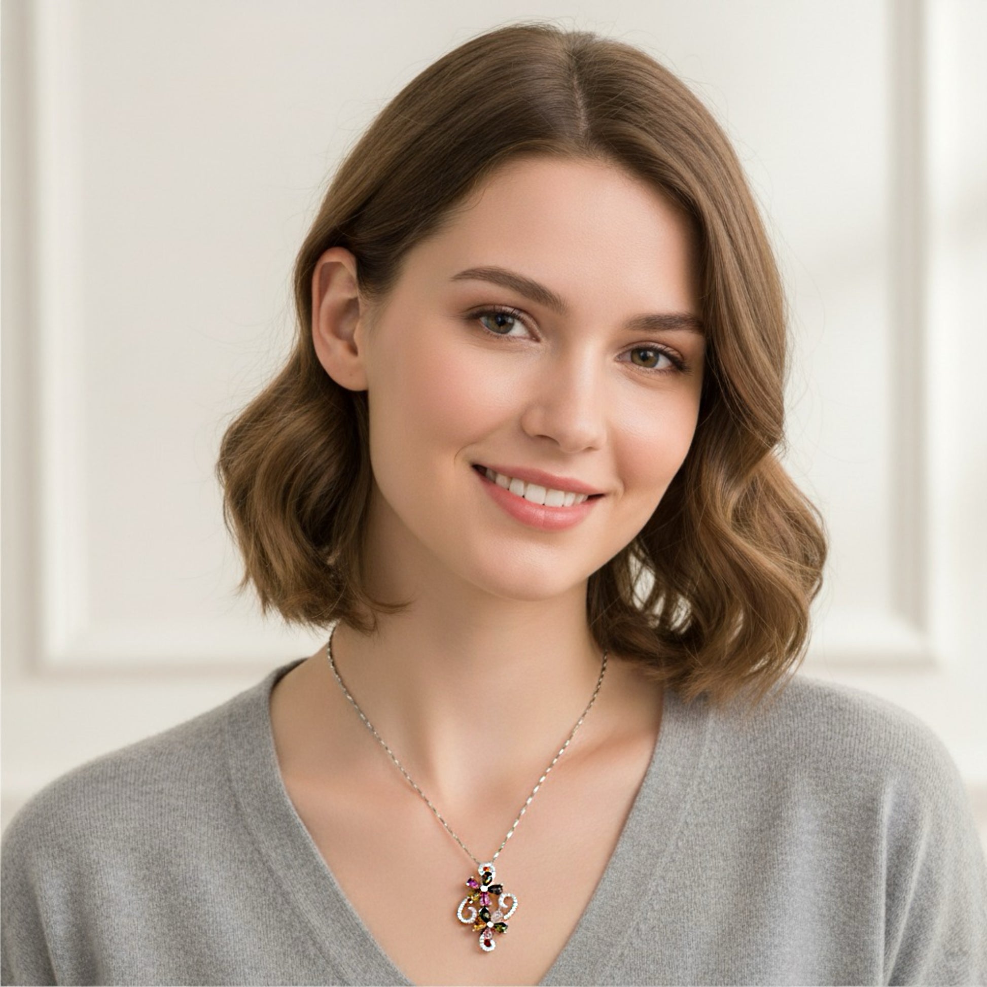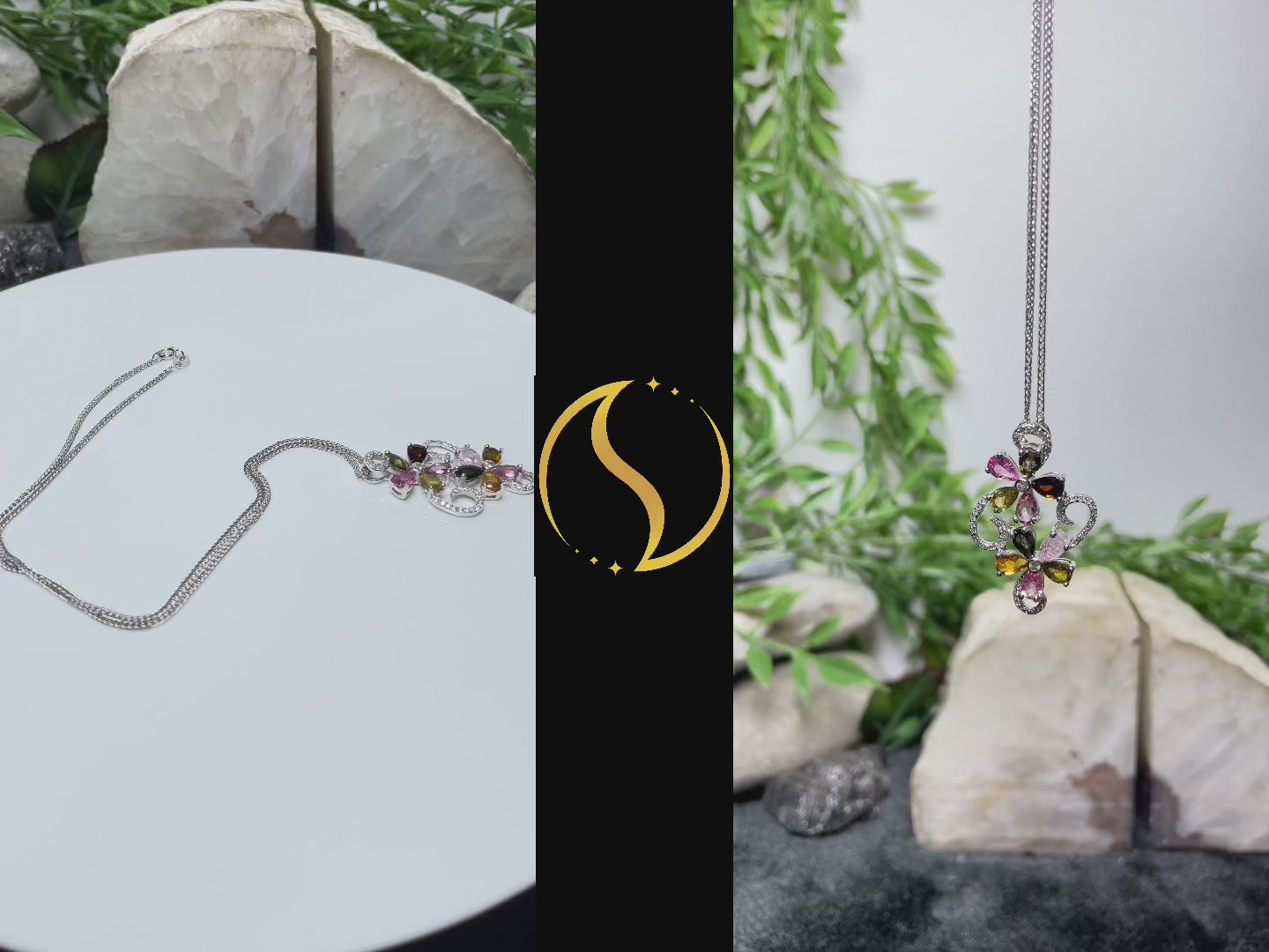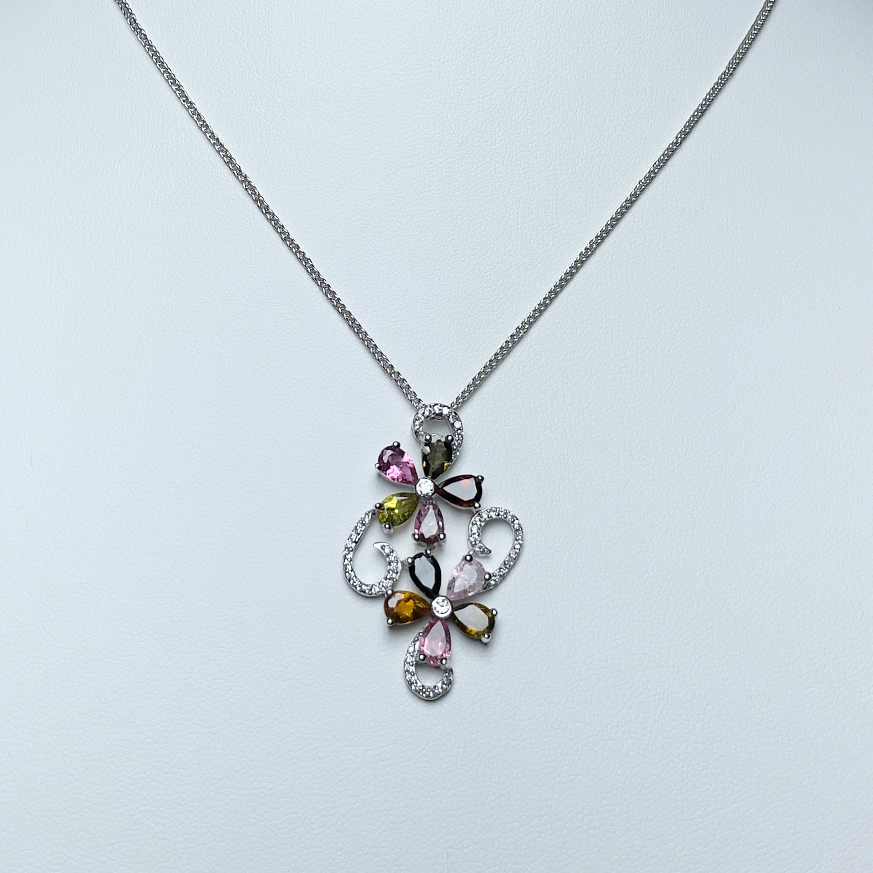 Stonelry Elegant S925 Sterling Silver Chain with Enchanting Tourmaline & Zircon Floral Pendant