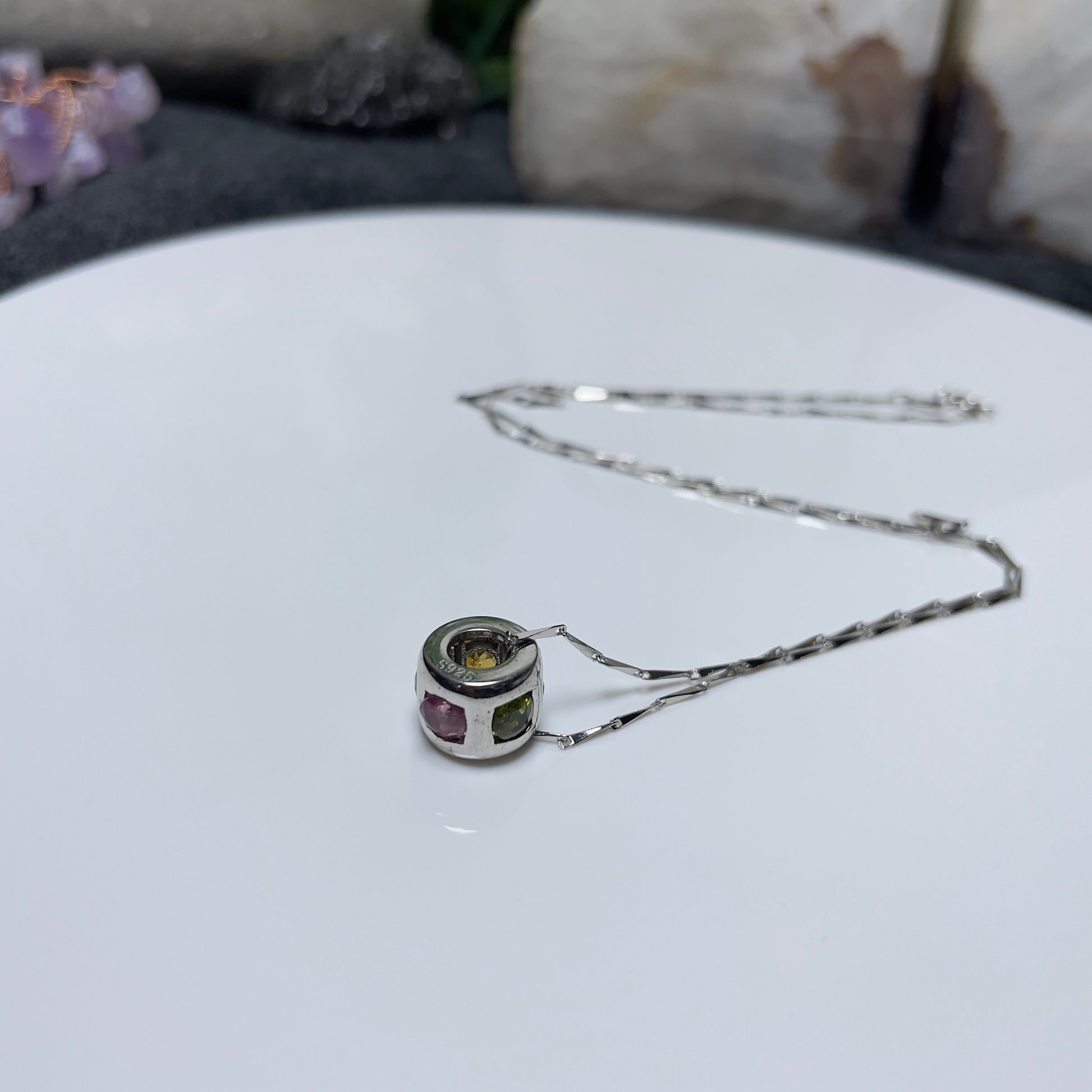 Stonelry Elegant Tourmaline & Zircon Pendant on S925 Sterling Silver Chain Necklace