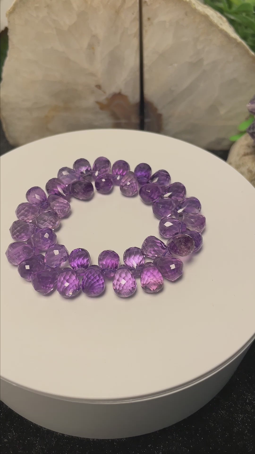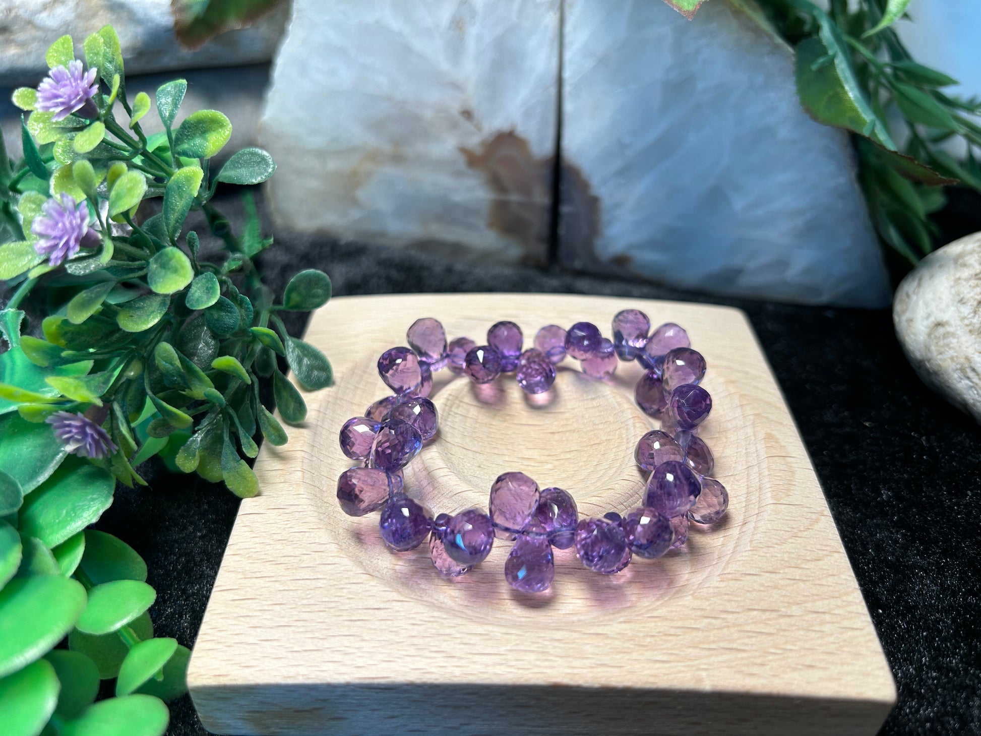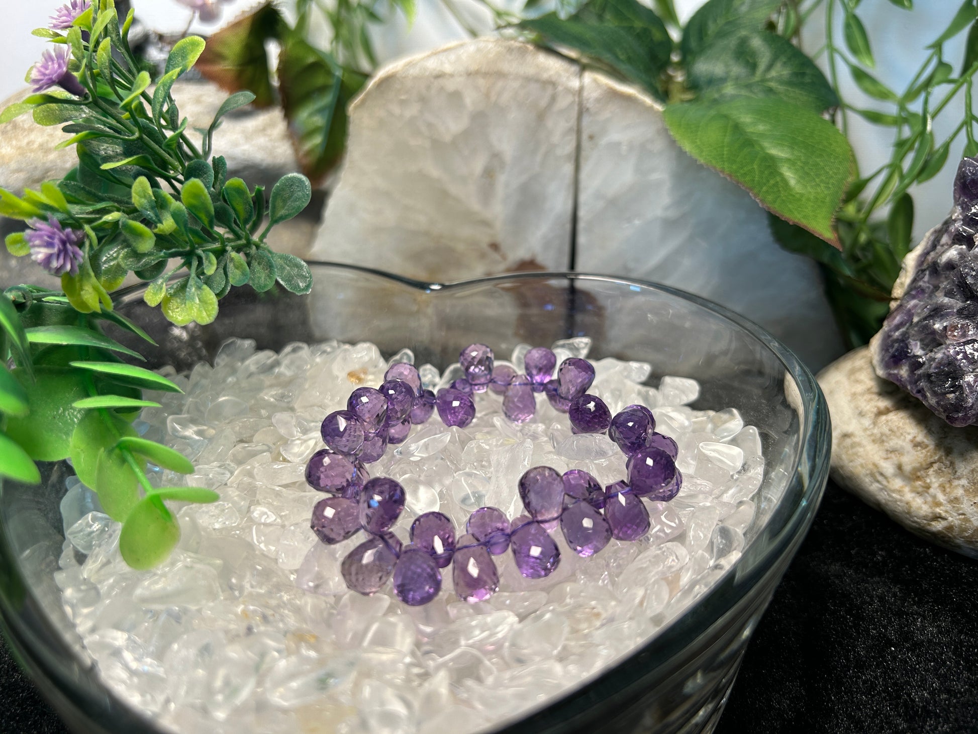 Introducing our exquisite Amethyst Teardrop Beaded Bracelet: a truly captivating and enchanting piece that effortlessly combines the natural beauty of amethyst gemstones with the elegance of a bracelet. Handcrafted with utmost care and attention to detail, each bead in this bracelet showcases the alluring and soothing purple hues that amethyst is renowned for.