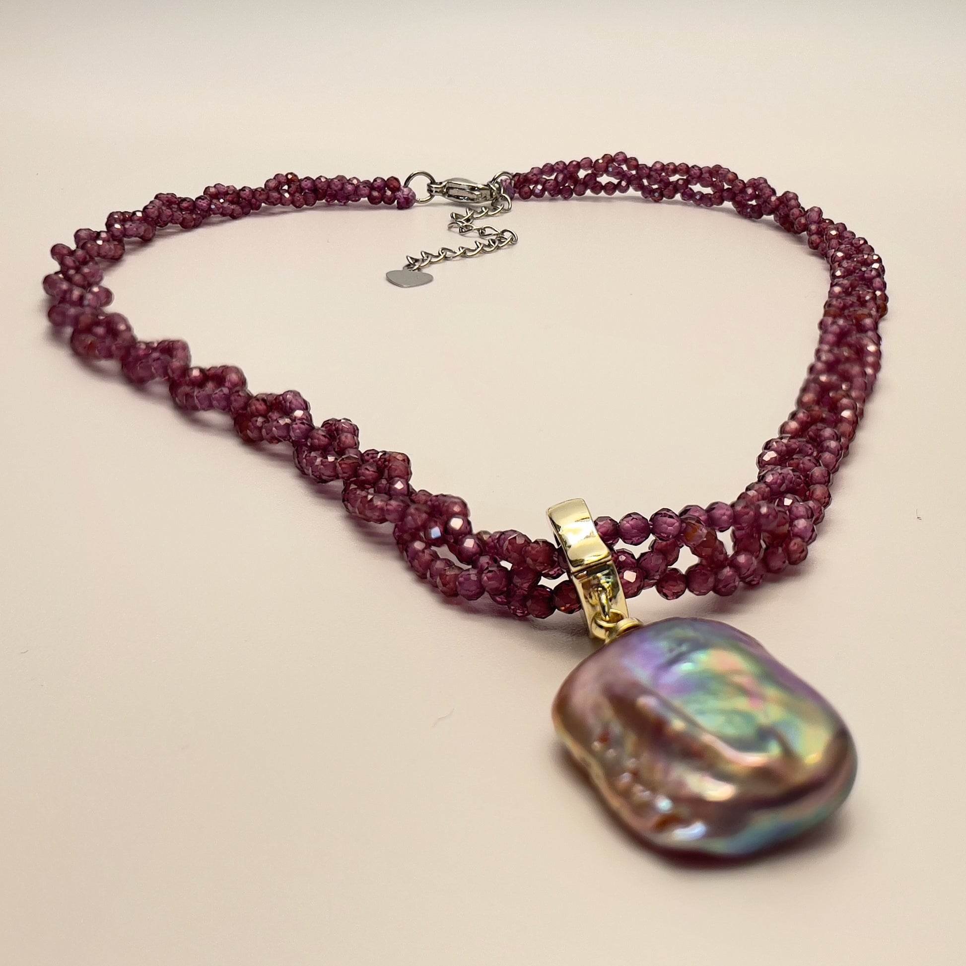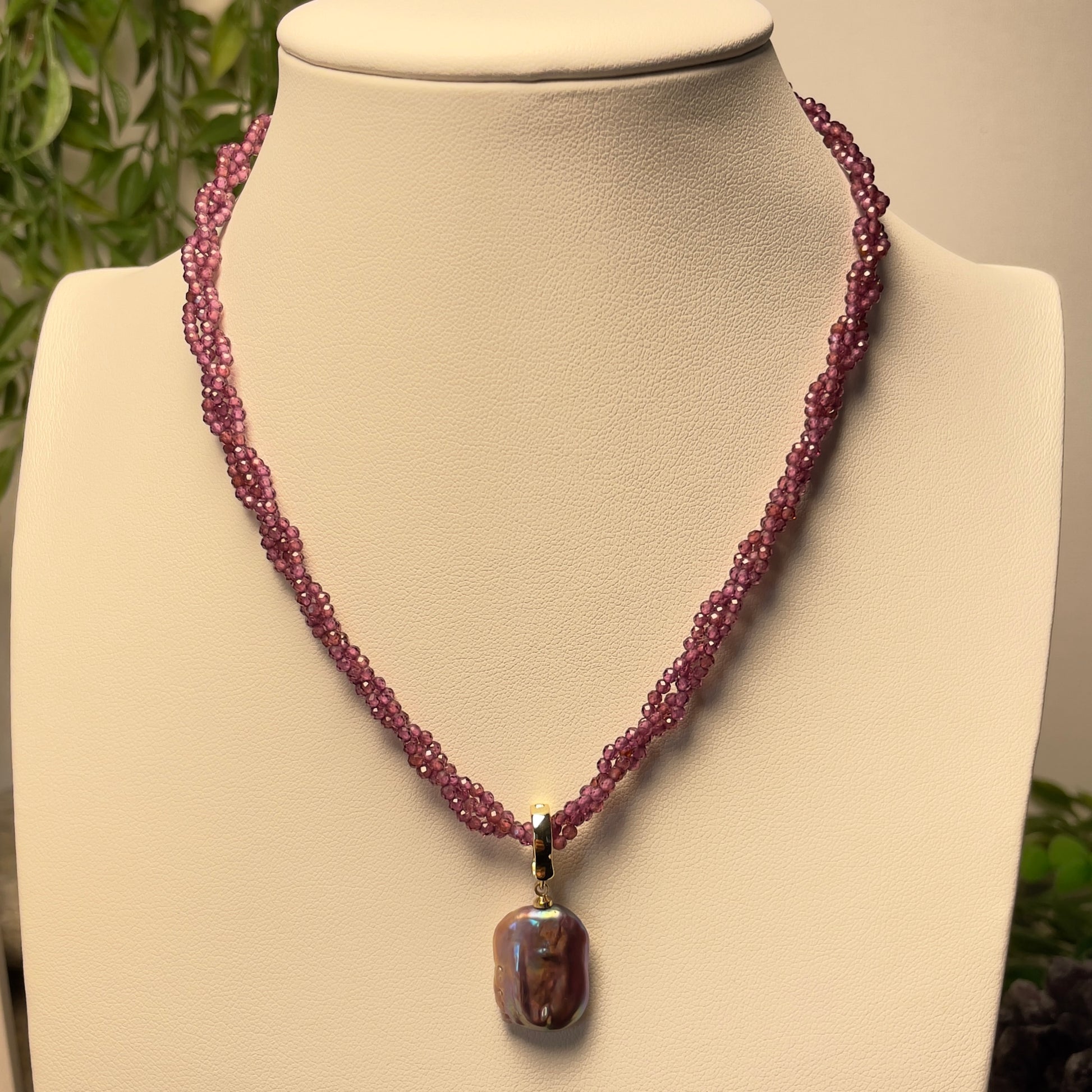 Crafted with quality materials and made to last, our garnet-beaded baroque pendant necklace is a must-have addition to any jewelry collection. It's perfect for those who appreciate the beauty of natural gemstones and seek a meaningful and fashionable accessory.