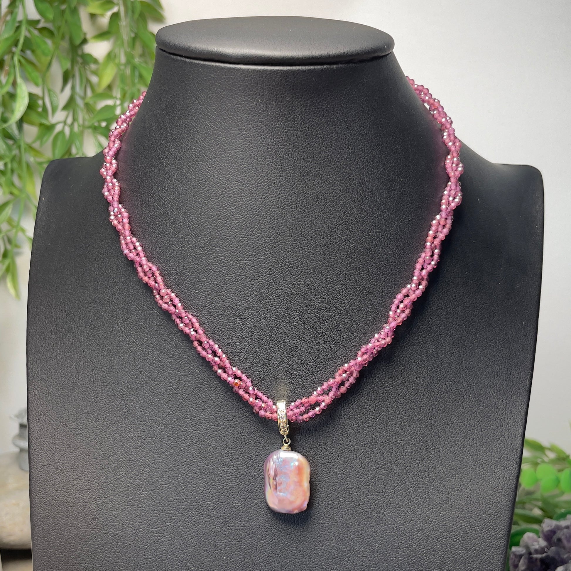 Introducing our stunning garnet beaded baroque pendant necklace, a beautiful piece of gemstone jewelry that captures the fiery allure of genuine garnet. Expertly crafted with attention to detail, this necklace features a beautiful baroque pendant that is elegantly set on a delicate garnet-beaded necklace.