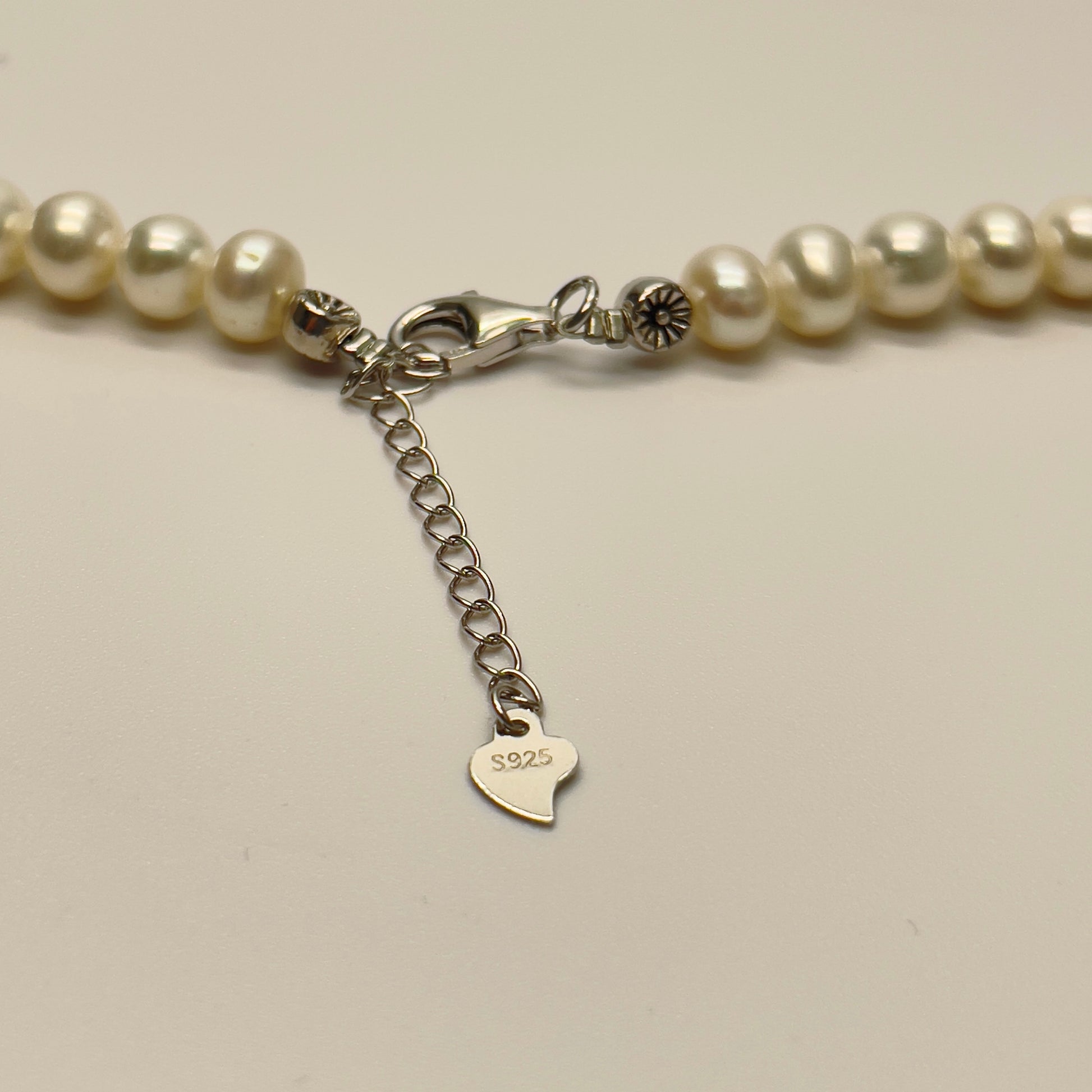 This necklace is a versatile piece that can be worn on its own or layered with other necklaces for a fashionable look. The shiny pearl necklace complements the pendant and adds a touch of sophistication to the overall design.