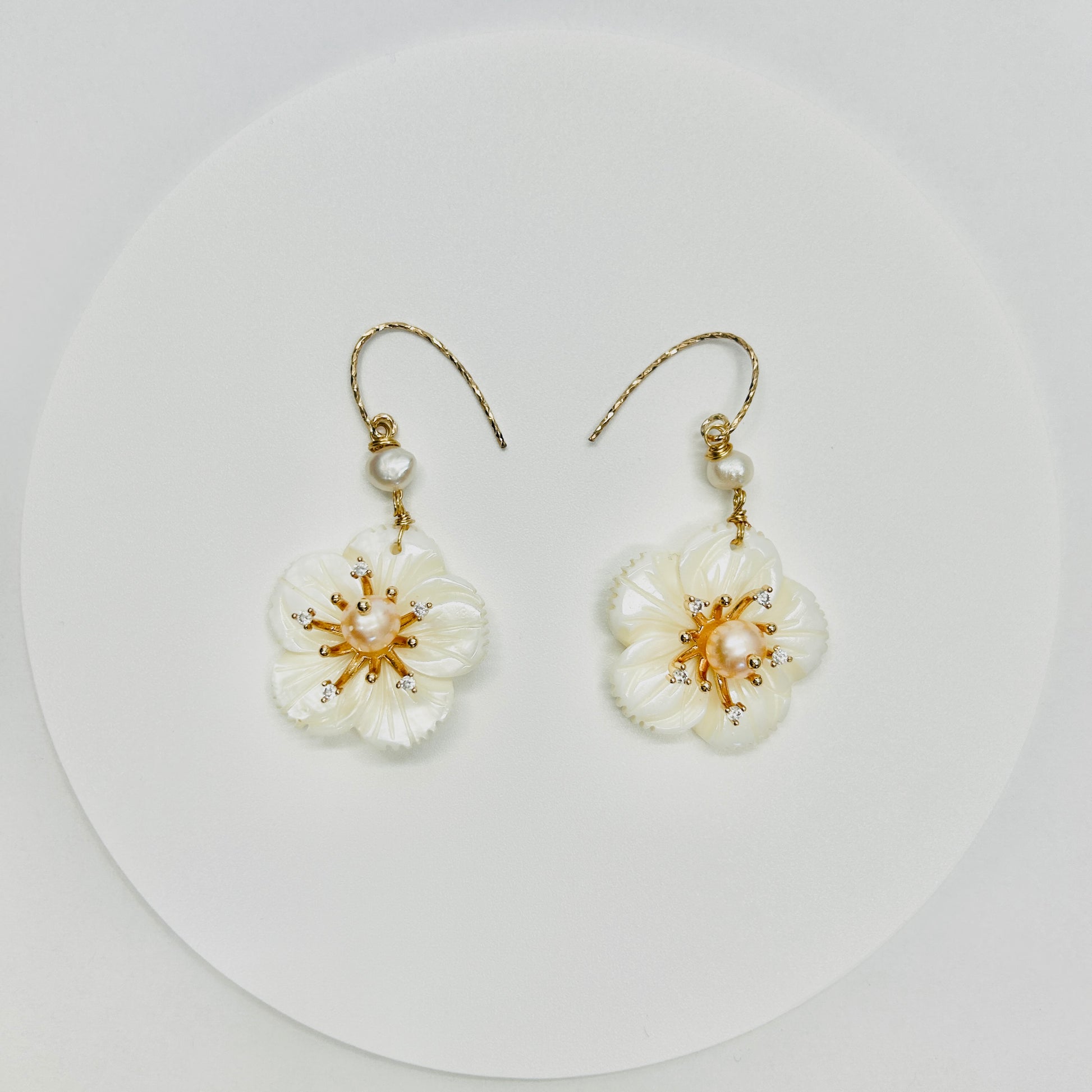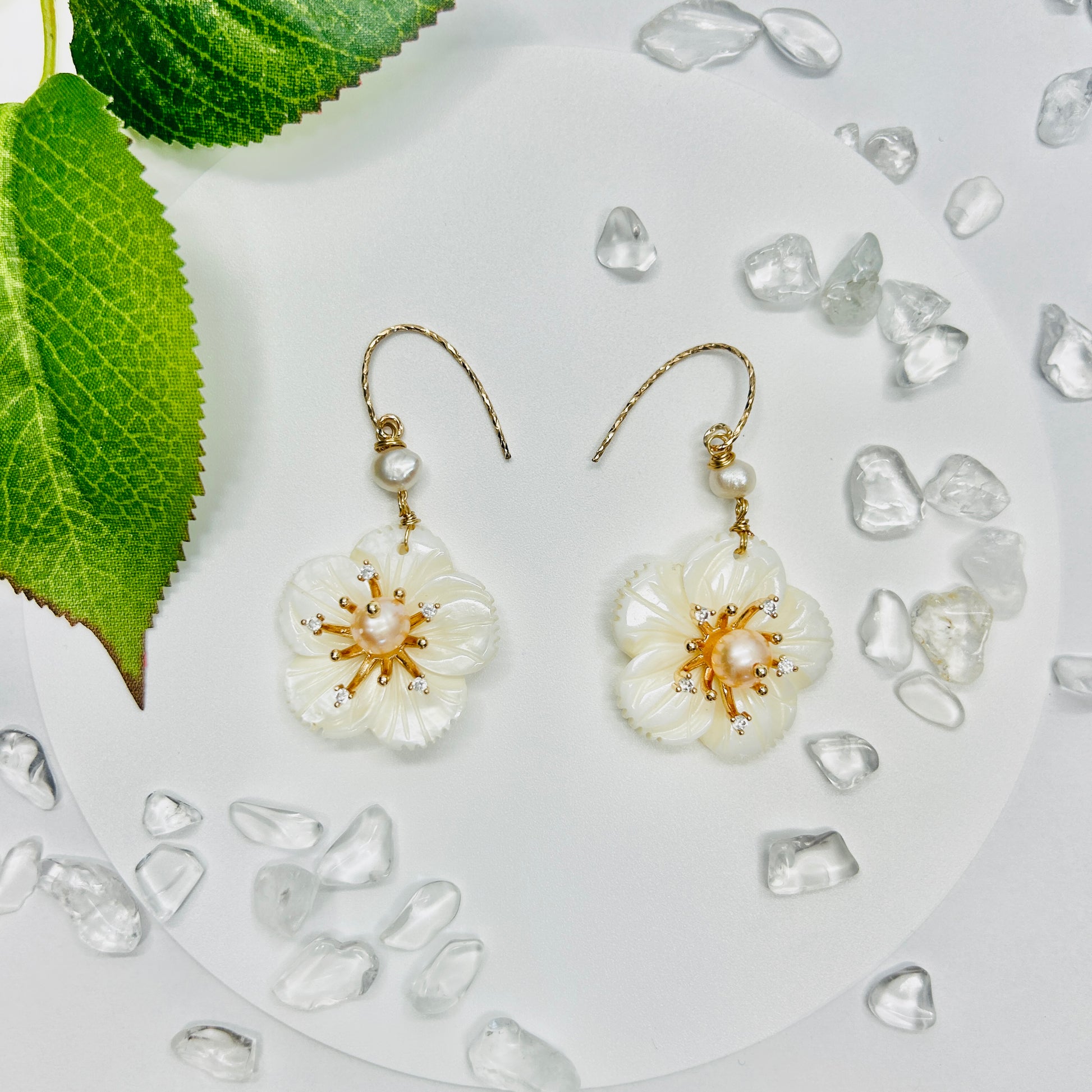 Stonelry Pearl Dangle Earrings - Mermaid's Hibiscus