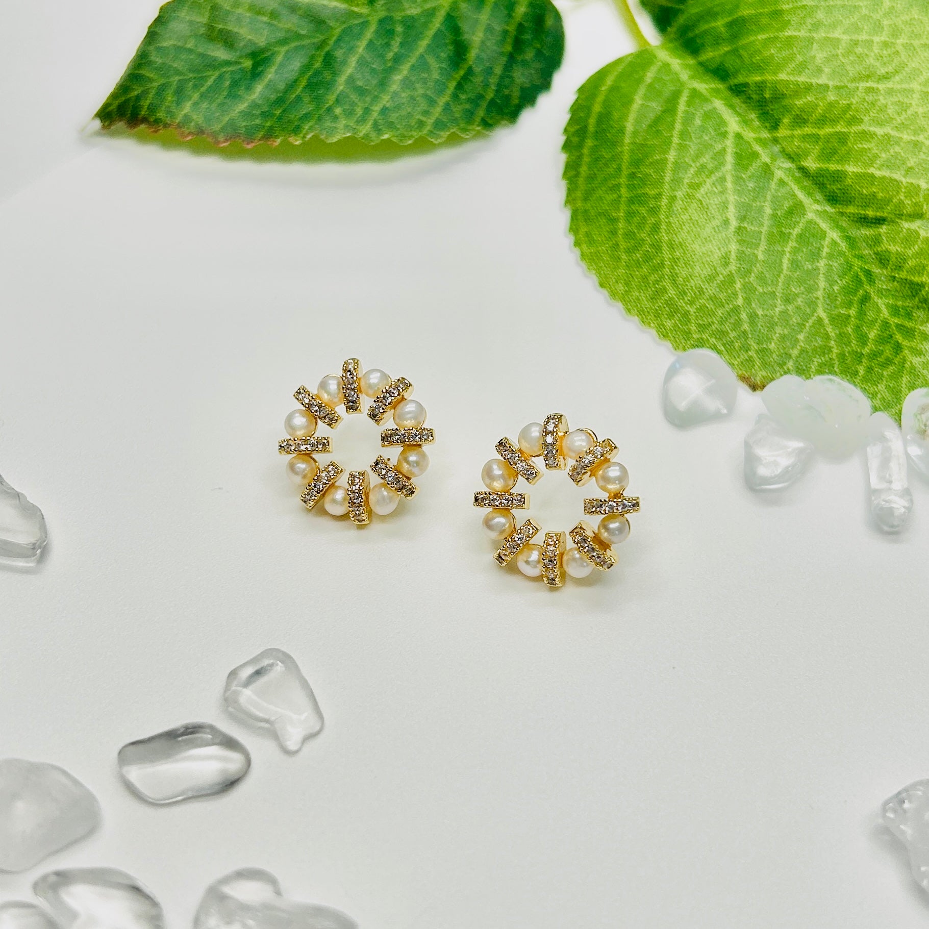 Stonelry Pearl Stud Earrings - Mermaid's Wreath