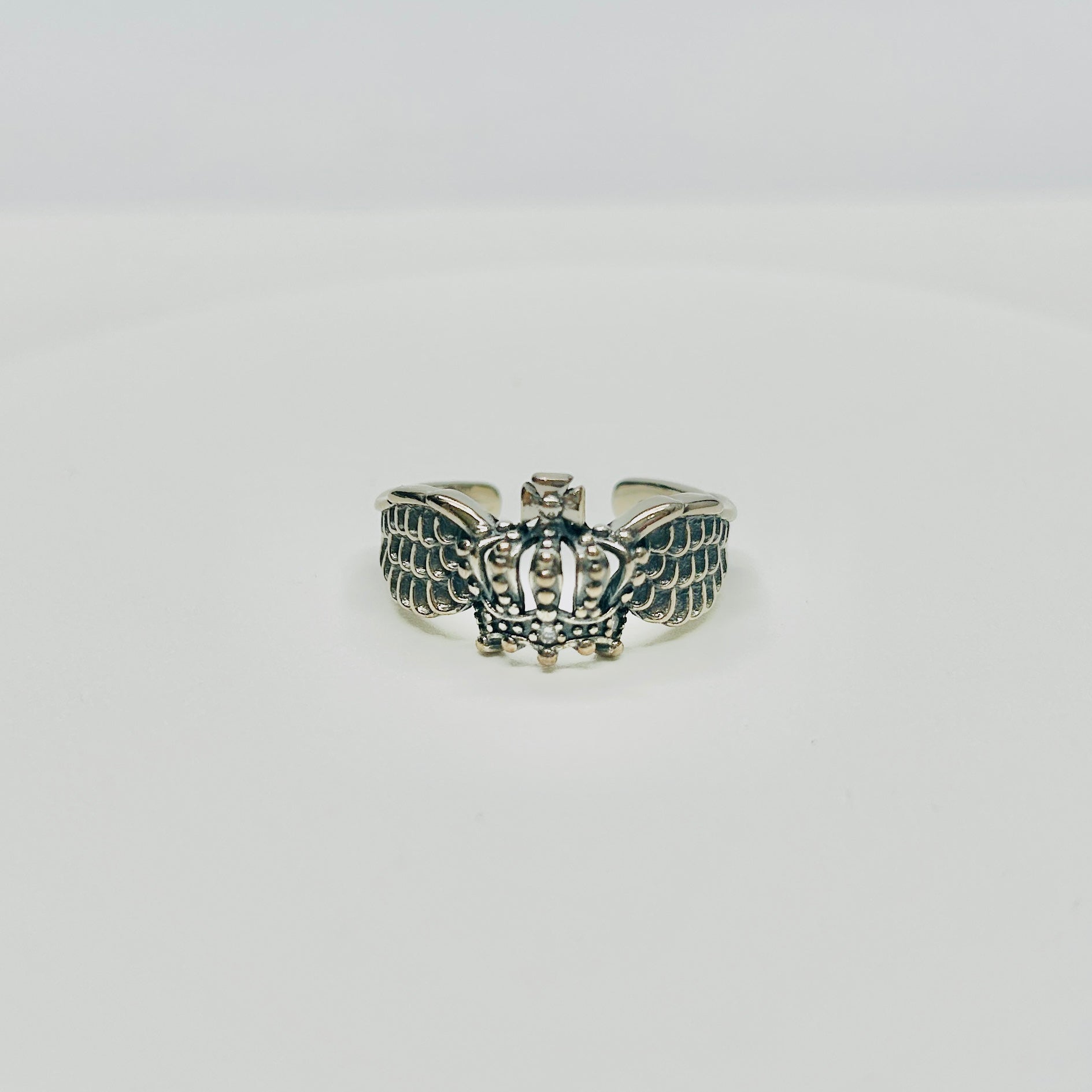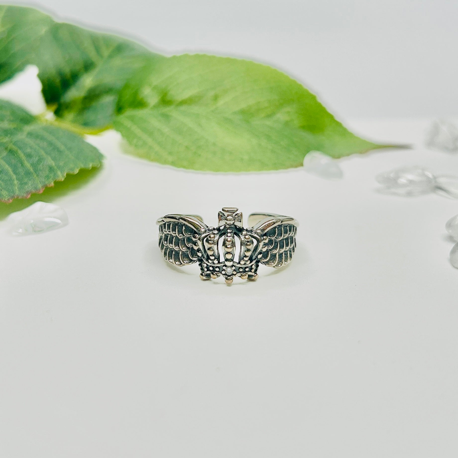 Crafted in sterling silver, the crown exudes a sense of luxury and sophistication. The winged motif adds a touch of ethereal beauty, while the open design ensures a comfortable and personalized fit. Whether you're dressing up for a special occasion or adding a touch of edge to your everyday look, this ring is a statement piece that commands attention.